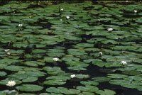 Imagen de un manantial con nenúfares en flor.